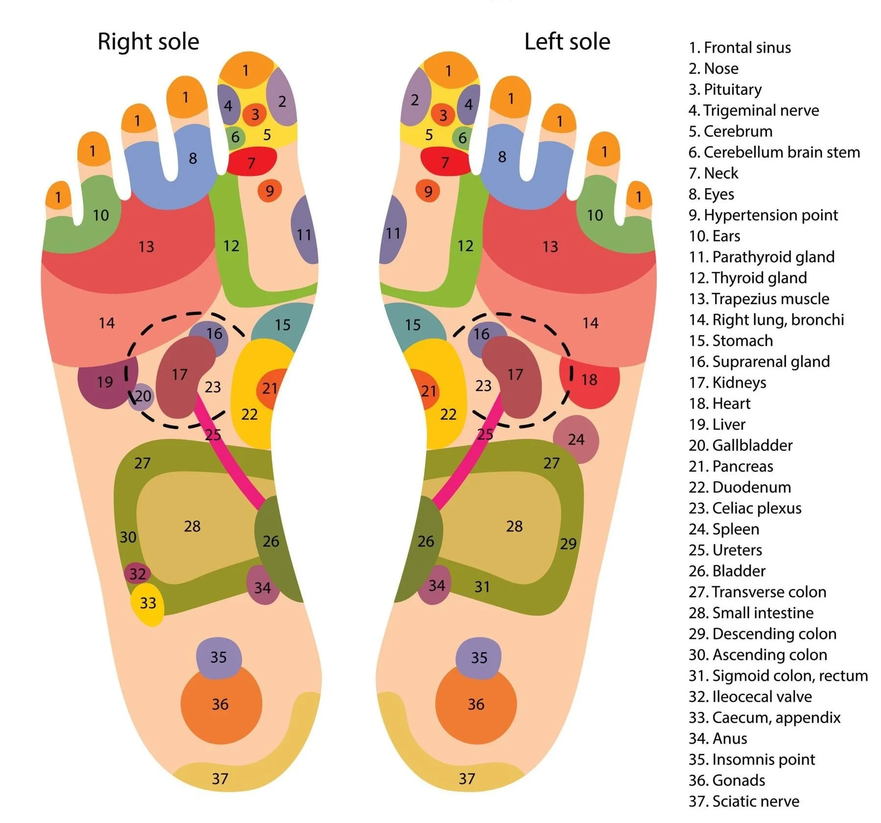 All of the internal body structures and organs are mirrored in the feet. By using gentle pressure, imbalances in the body can be treated through zones on the feet It is non invasive and very relaxing.